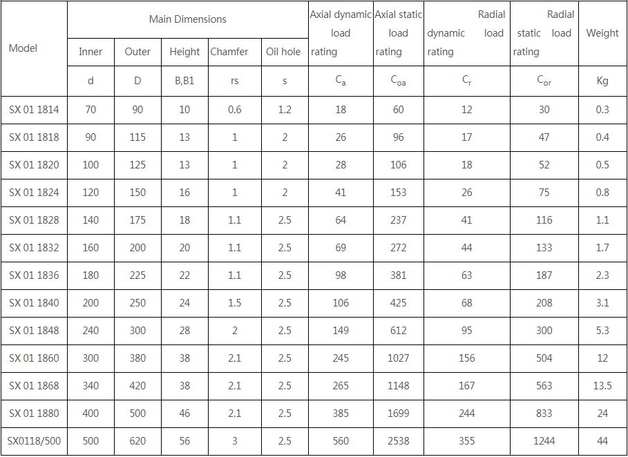 SX系列交叉圓柱滾子軸承型號(hào)尺寸參數(shù)