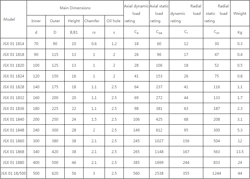 JSX系列交叉圓柱滾子軸承型號(hào)尺寸參數(shù)